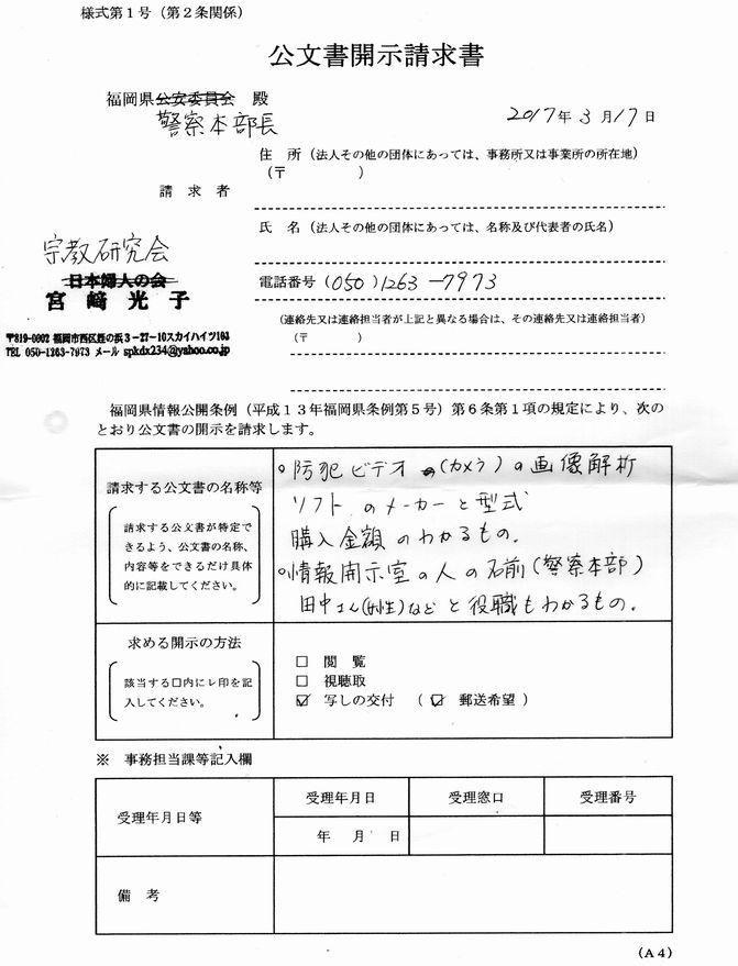 福岡県警察本部の情報開示室はとにかく開示てつづきをさせたがらない。