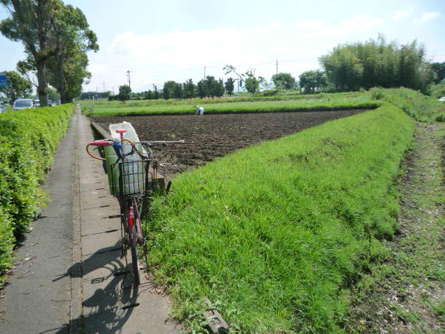 そこにいた おじさんに おききすると あぜみちに じょそうざいを まくのだそうです。