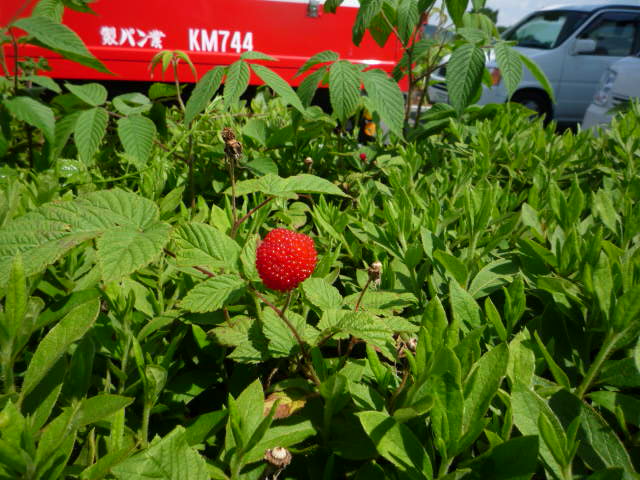↓のいちごや たんぽぽ はたけなどを とおりすぎて 1じかんいじょうかけて とうちゃくしました。