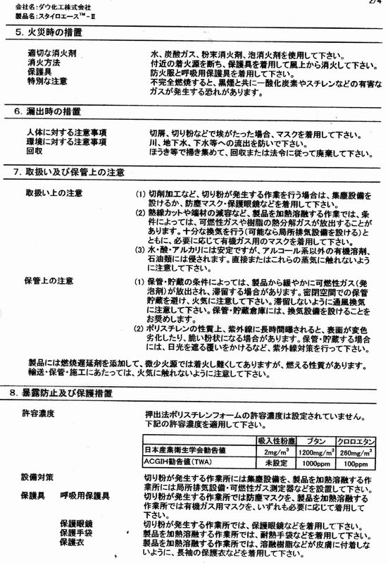 48スタイロエースⅡ断熱ボードSDSもとめる。