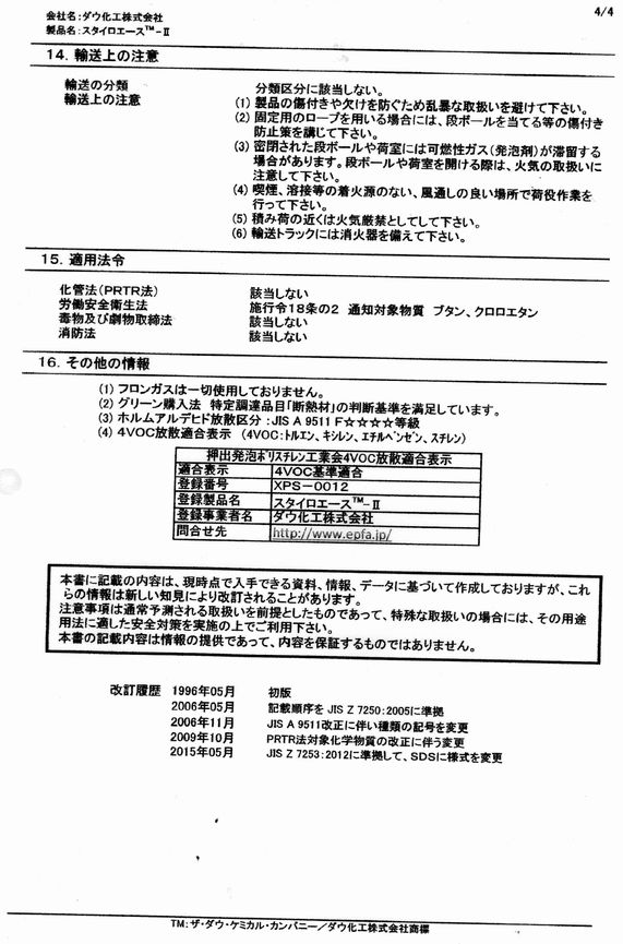 48-1スタイロエースⅡ断熱ボードSDSきました。