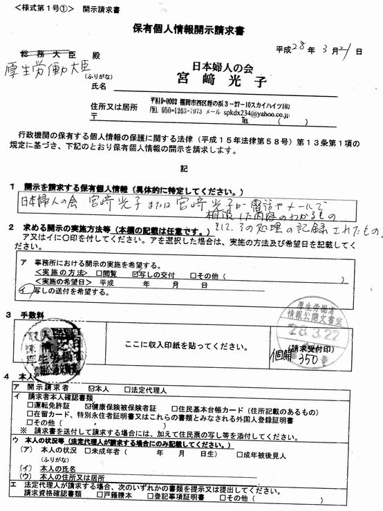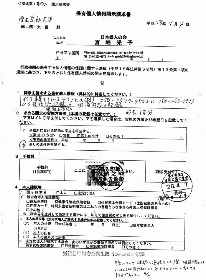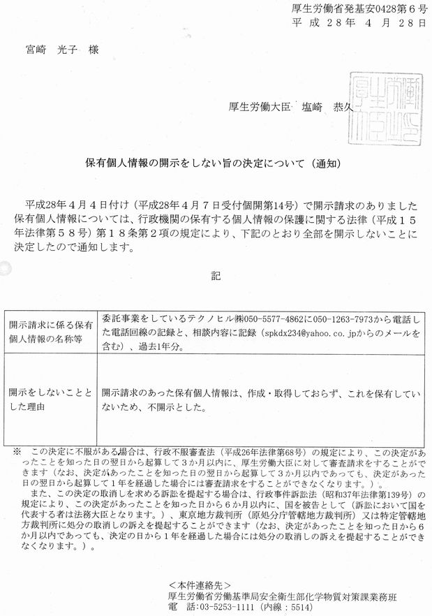 わたしが こうせいろうどうしょうに といあわせしたの きろくナシ。