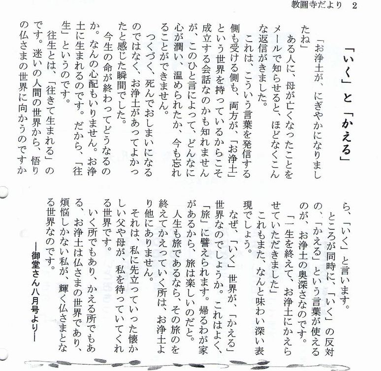 往生の本来の意味は、仏になり悟りを開くために、仏の国に往き生まれる事である。よって、往生の本義は、ただ極楽浄土に往く事にあるのでなく、仏になる事にある。