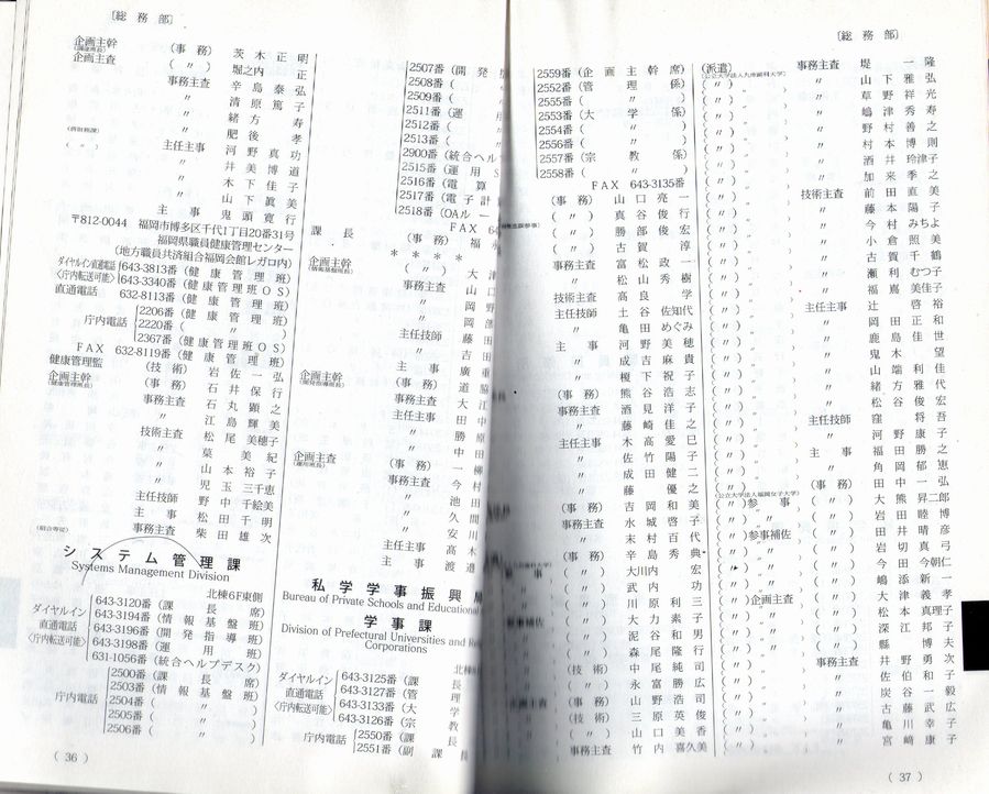平成22年2010年の福岡県の職員録もってます。