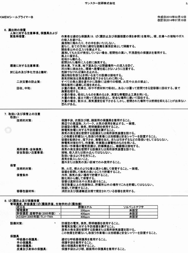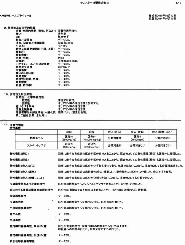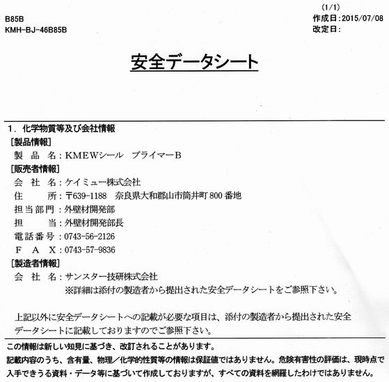 建築シーリング材用のプライマー(溶剤型)のSDSです。