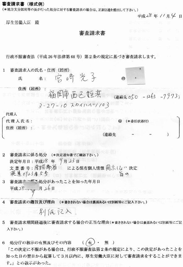 審査請求書の ばしょを 宮本さんに おしえていただきまして ネットからとりまして かきました。