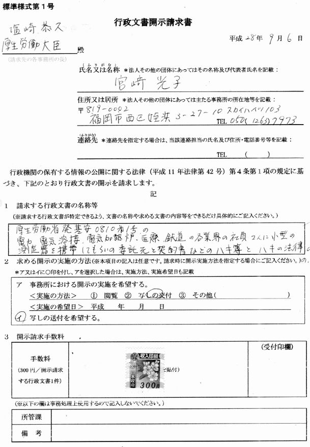 よしの229-2労働基準局安全衛生部化学物質対策課 奥村伸人さま 回答お願いします。