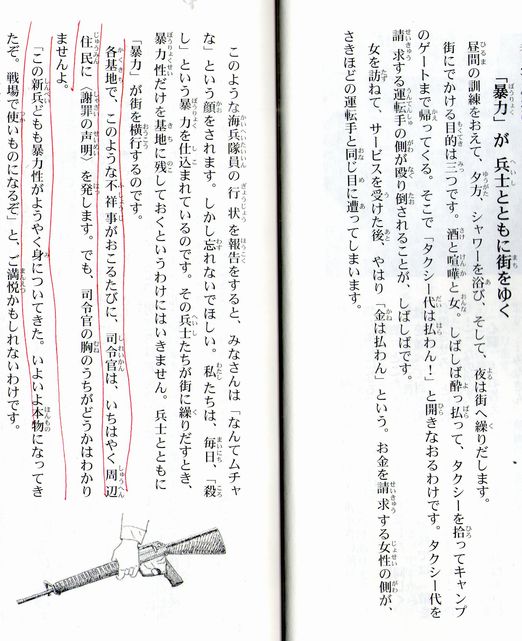 かんがえてみれは「アメリカでは しゃげきくんれん、おきなわでは さつじんくんれんをしていた」