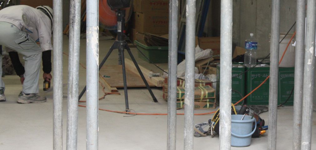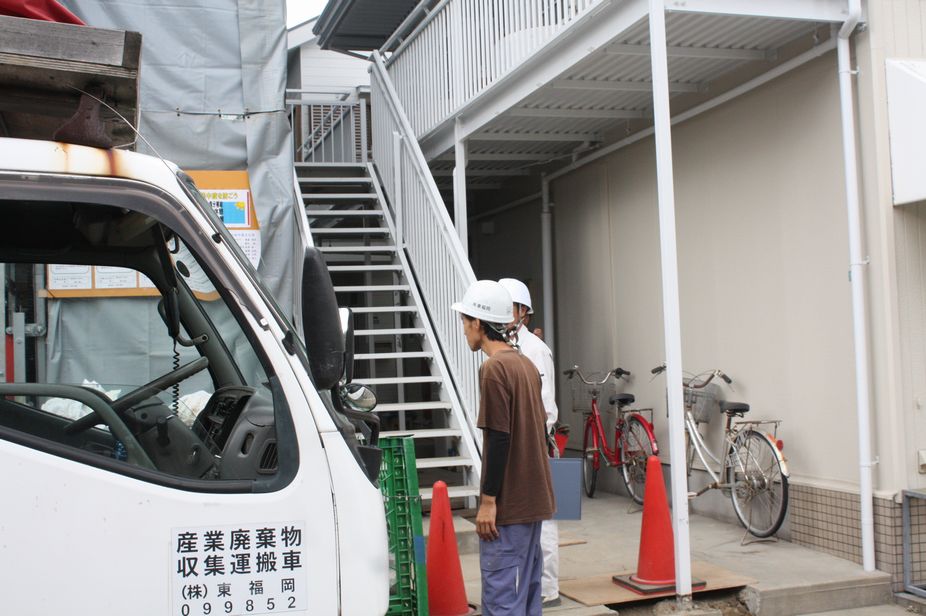 昨日現場を見に行きましたら、事務所が隣のアパートにありました。