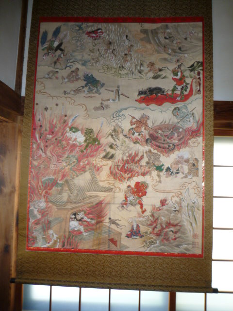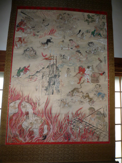 昨日、お寺にお参りに行ったら、地獄絵のようなのが飾っていりました。