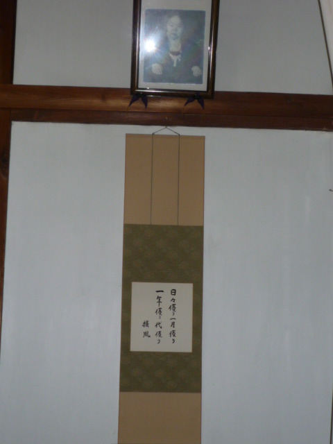 掛け軸もありまして、3代目の三代金光様・金光攝胤君(こんこうせつたねのきみ)のお言葉がかけてありました。