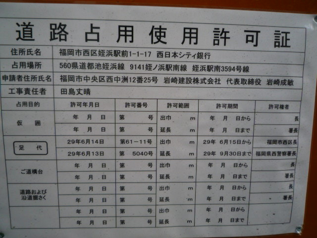 姪浜の西日本シテイ銀行の外壁などの補修工事は