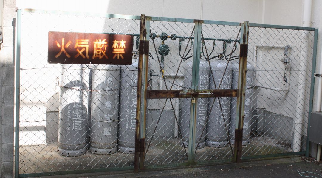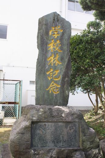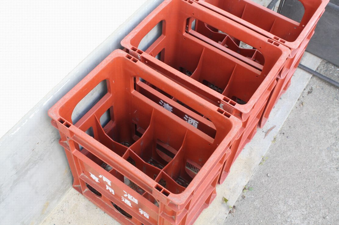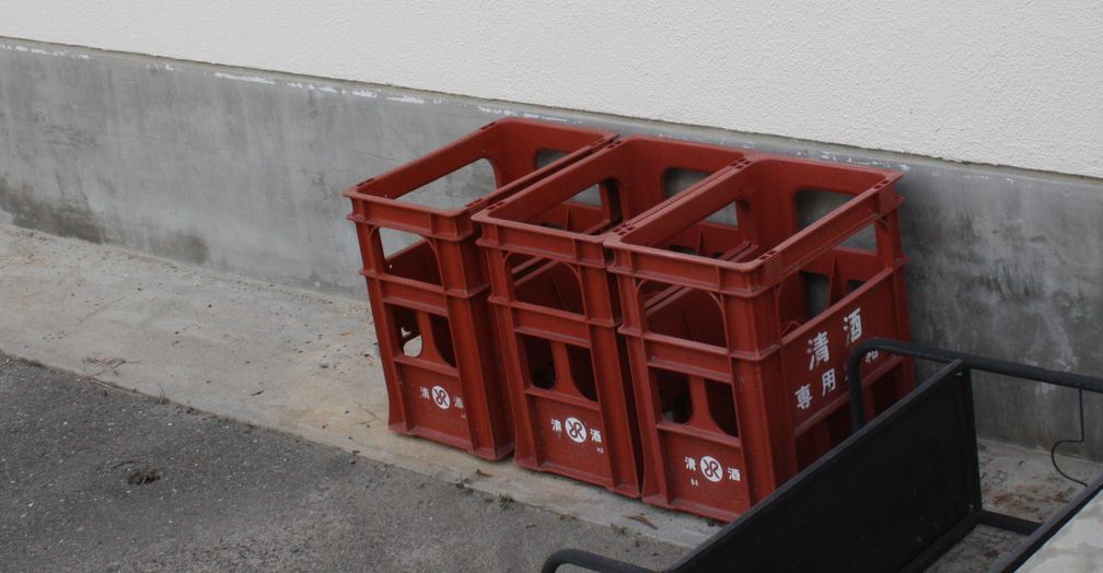 比良松中学校の校舎の脇にお酒のケースが置いてあるのが印象的でした。