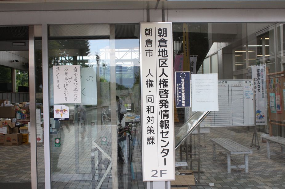 比良松中学校の隣の朝倉町役場のボランティアセンターに7月16日行きました。